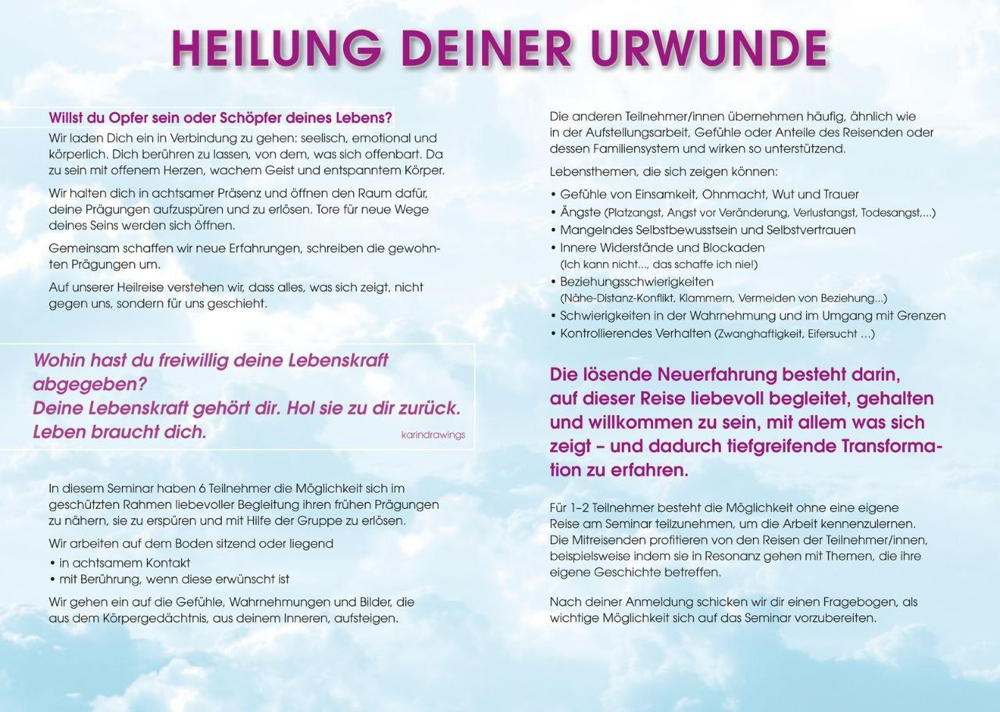Es empfiehlt sich eine frühzeitige Anmeldung, da Dein innerer Prozess bereits zum Anmeldezeitpunkt beginnen kann.